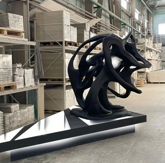 В холле белоснежно-черного интерьера расположена скульптура Зарождение Вселенной.