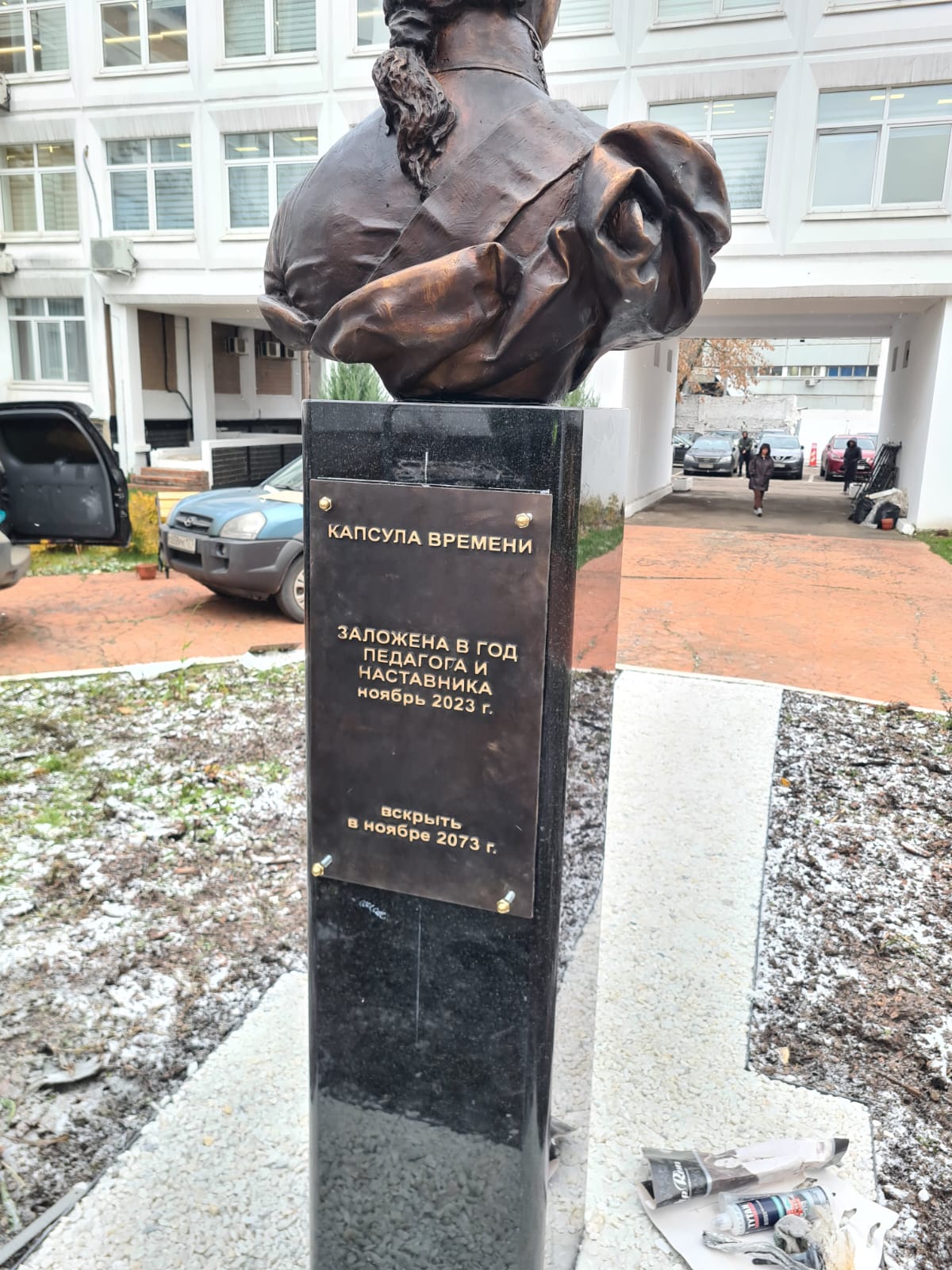 С обратной стороны памятника была заложена капсула с посланием будущим поколениям.